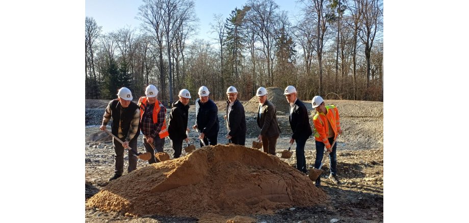 Mit dem symbolischen ersten Spatenstich fiel am Freitag, 27. Februar 2026, der offizielle Startschuss für eines der bedeutendsten Infrastrukturprojekt der Region: Den Bau des gemeinsamen "Hochbehälters Spitzenstein" der Verbangsgemeinde (VG) Loreley und der VG Nastätten. In der Gemarkung Oberbachheim, zwischen Dachsenhausen und Winterwerb, konnten nun zahlreiche Vertreterinnen und Vertreter aus Politik, Verwaltung und den kommunalen Gremien an der Feierstunde, darunter die Bürgermeister Mike Weiland und Jens Güllering, die Werkleiter der jeweiligen Verbandsgemeindewerke sowie Vertreter der Landespolitik den ersten Spatenstich setzen. Als Ehrengast war Dr. Erwin Manz, Staatssekretär im Ministerium für Klimaschutz, Umwelt, Energie und Mobilität Rheinland-Pfalz (MKUEM) zugegen. Das MKUEM fördert das Projekt zu großen Teilen.