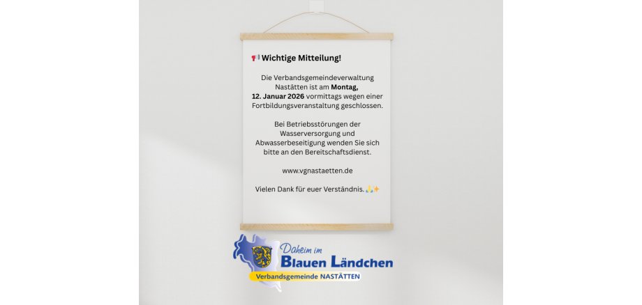 Der Bereitschaftsdienst der Verbandsgemeindewerke für die Wasserversorgung und Abwasserentsorgung ist telefonisch unter a) Wasser 0175/9182001 oder b) Abwasser 0178/2144292 ansprechbar.